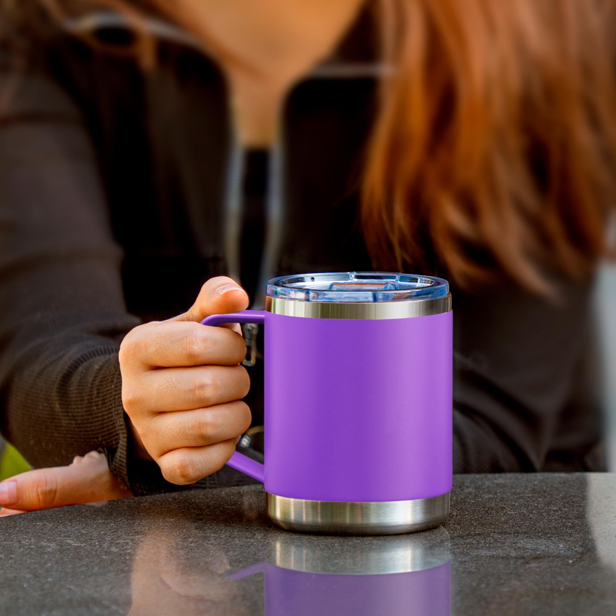Insulated Coffee Mug with Lid, 12 oz Travel Coffee mug with handle Double Wall Stainless Steel Travel Tumbler Cup, Spill Proof (Purple).