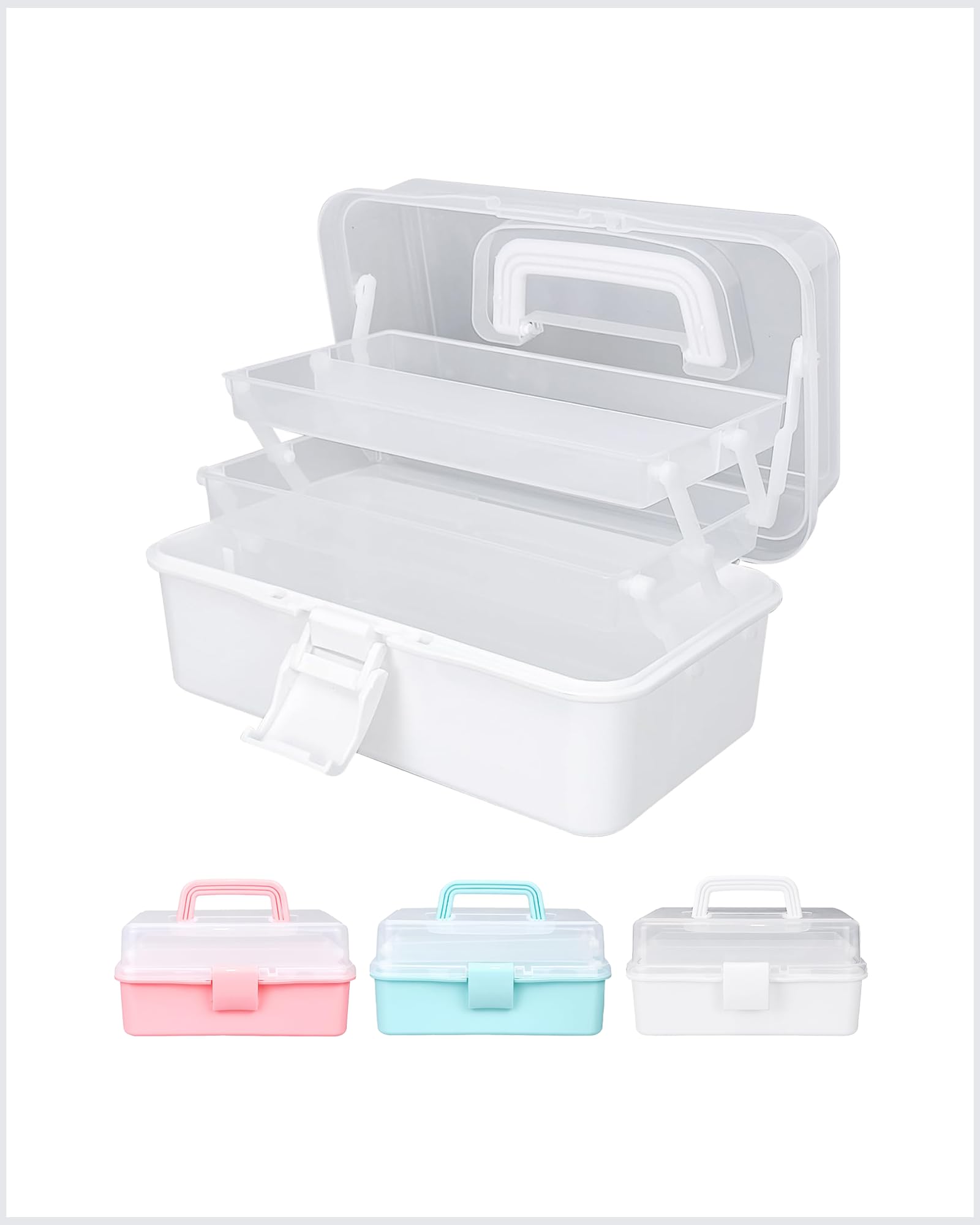 The box's durable construction ensures it can withstand the rigors of repeated use, while its portable design with handle makes it easy to transport and relocate as needed. — Folding 3-Layer Storage Box Organizer, 21x13x11.5cm with Adjustable Compartments, Multi-Purpose Craft, Sewing, Bead, and Toy Organizer, Portable with Handle(White) — $12.99While it's hot.