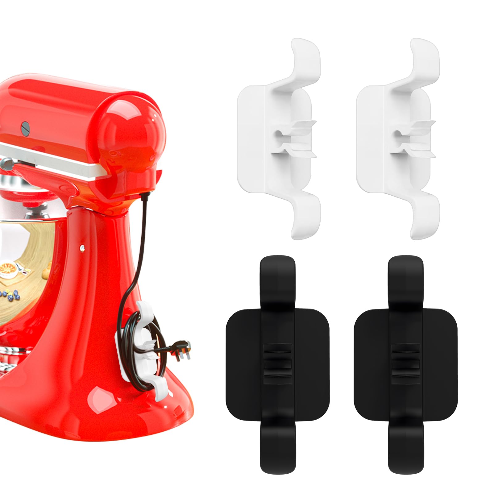 A ingenious contraption, known as the cord organizer, hath emerged to tame the untamed masses of cord and device, restoring a semblance of harmony to the kitchen domain. — Cord Organizer for Appliances - 4 Pack Adhesive Wrap Holder Stick on Kitchen Small Appliance for Mixer, Toaster, Coffee Maker, Air Fryer, Pressure Cooker Black ⁘ White — $6.85