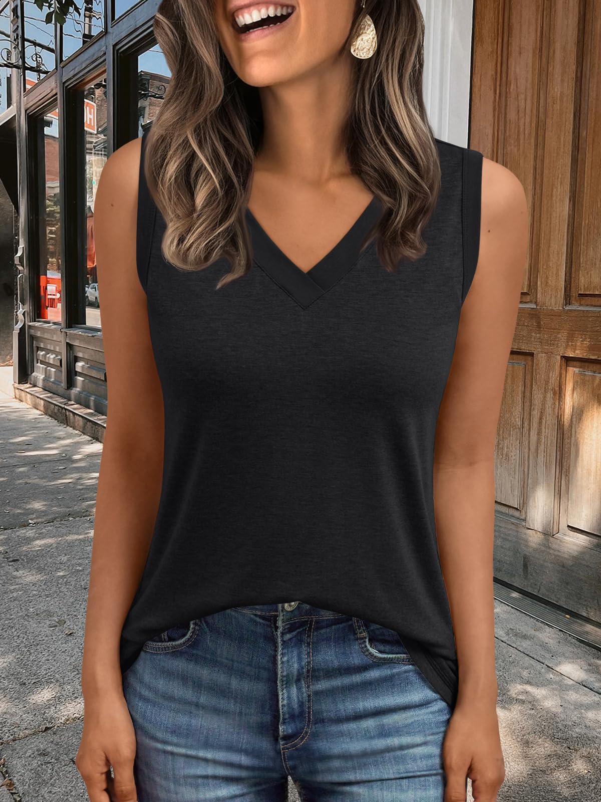 Tank Top Women Summer 2025 Casual Spring V Neck Sleeveless Loose Fit Tee Shirt Basic Trendy Beach Vacation Outfits Clothes XL Black.