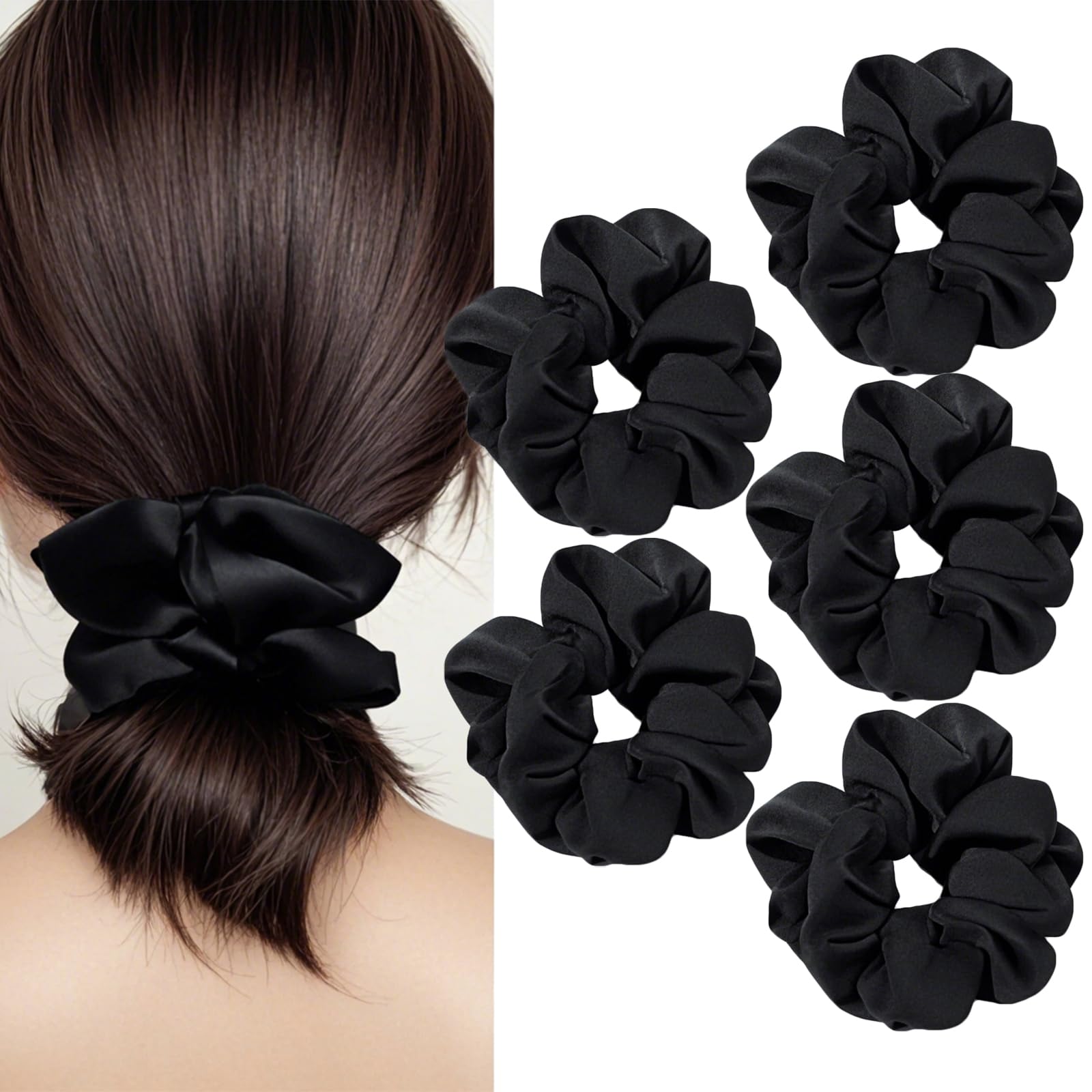Silk Scrunchies for Women Hair Ties no Damage Black Satin Scrunchies Hair Ribbons for Women.