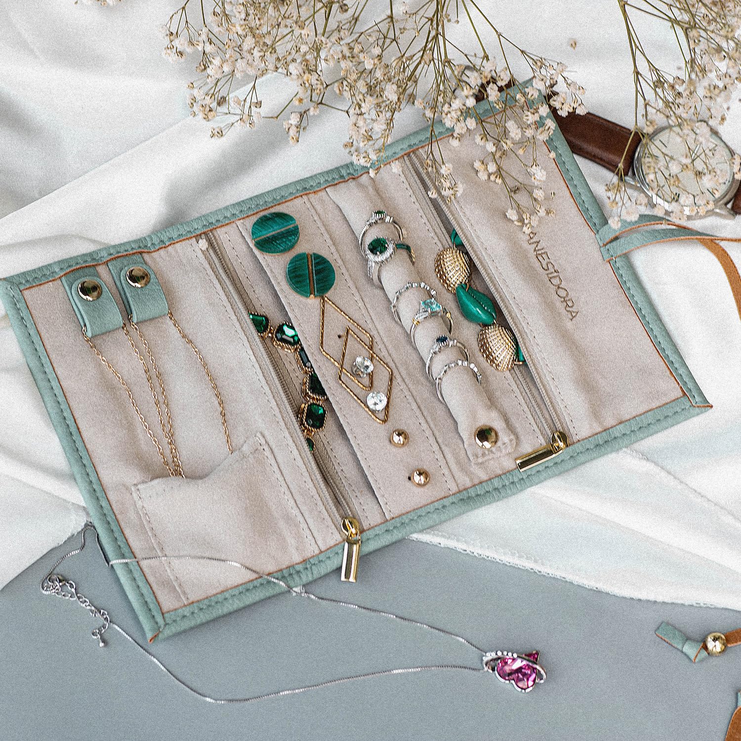 Jewelry Storage Roll for Storing Necklaces, Rings and Earrings, Easy to Carry, Foldable, Necessary for Women Travel, Exquisite and Lovely, Suitable for Gifts Jewelry bag, Green -13% $6.95 $ 6 . 95 $7.99 $7.99