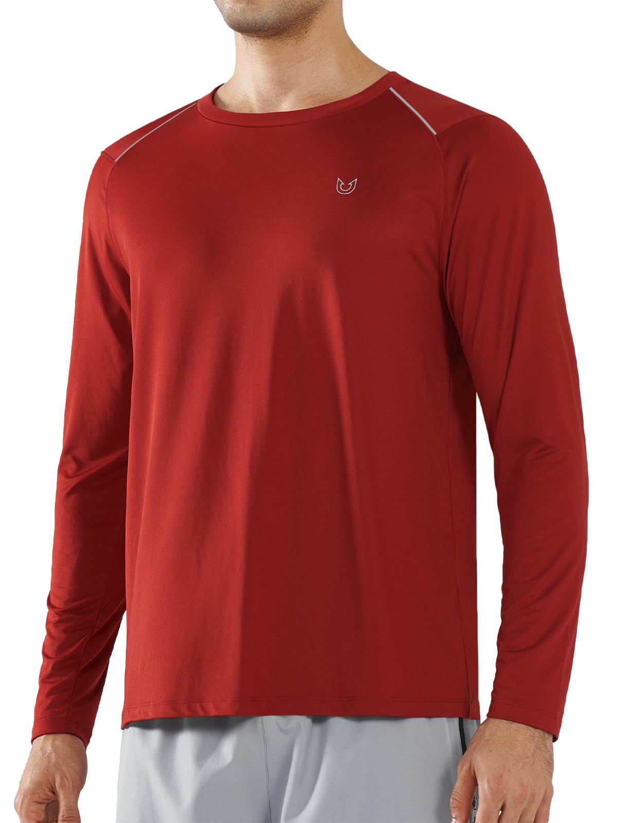 Men's Long Sleeve T-Shirts Quick Dry Running Shirt for Athletic Workouts Redochre XL.