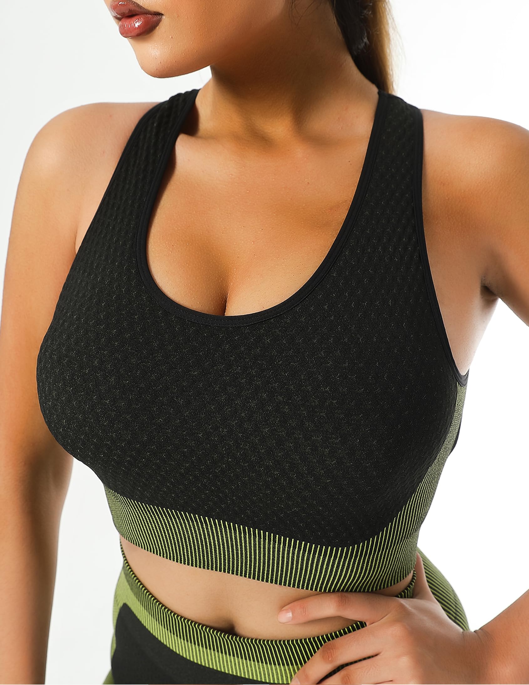 Women's Racerback Textured Sports Bra with Round Neck Design for High Support and Stylish Workouts (Green, S).