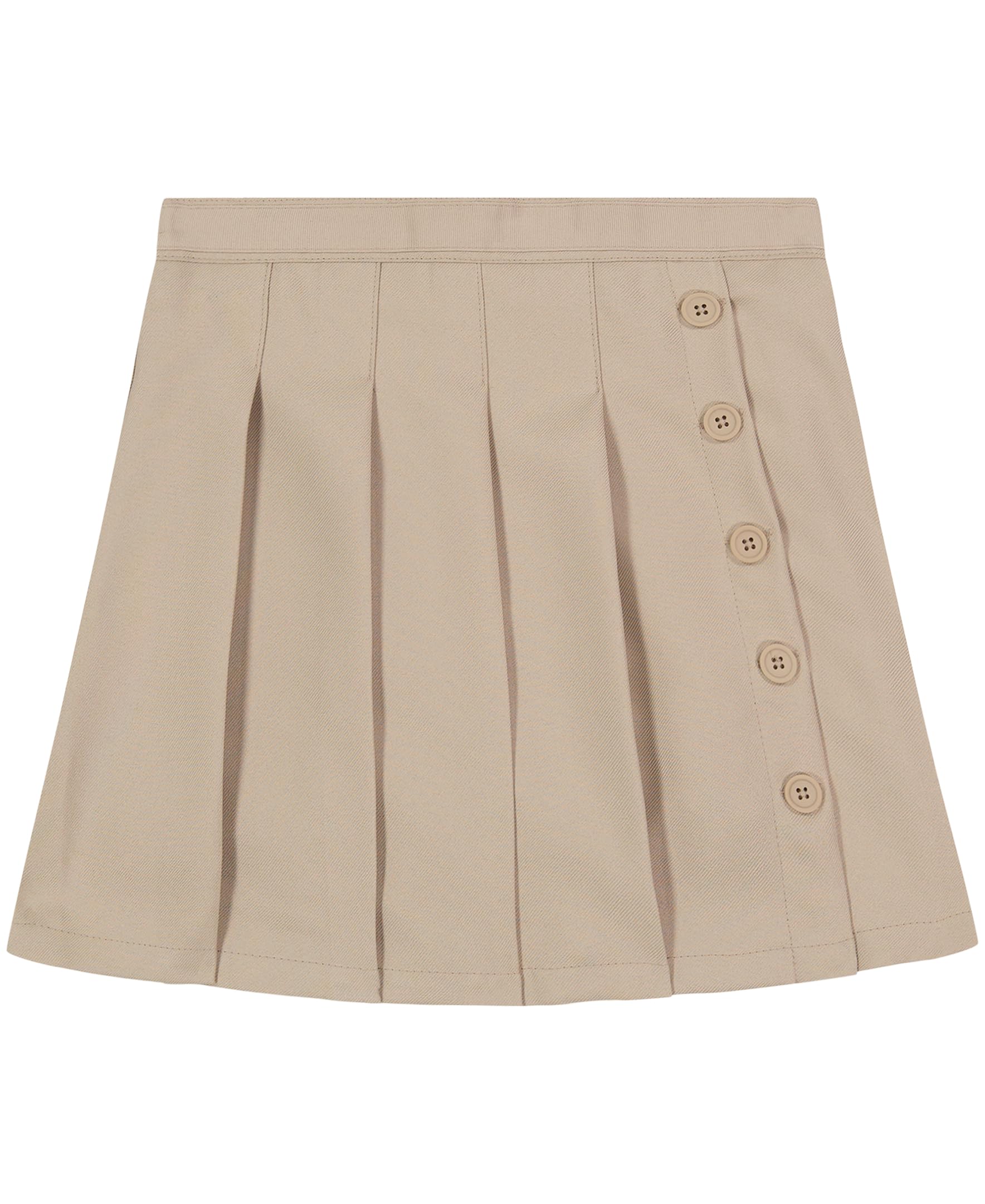 Nautica Girl's School Uniform Pleated Pull-on Scooter Skirt With Undershorts, Knit Waistband, Khaki, 6.