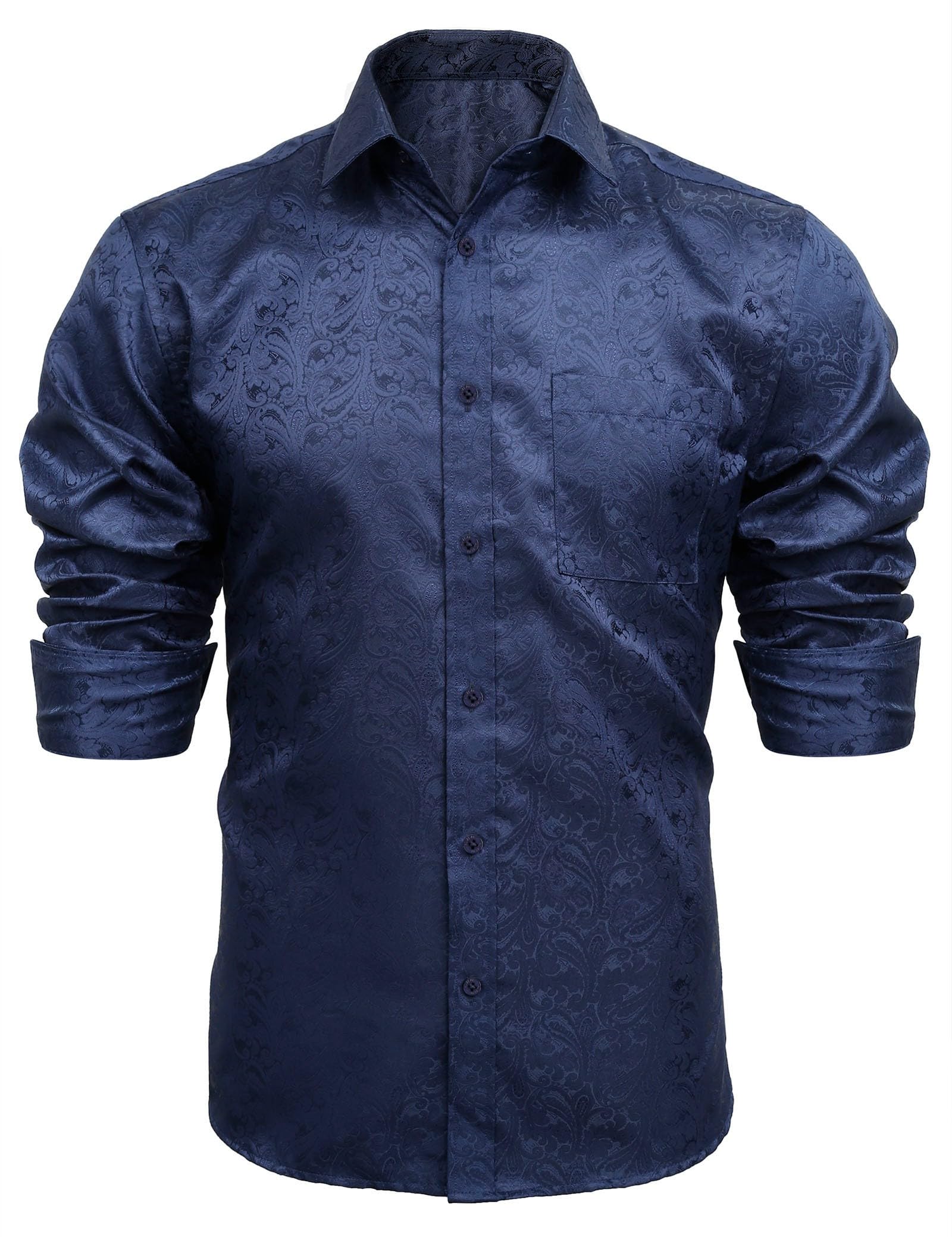 Mens Retro Classic Paisley Jacquard Slim Fit Dress Shirt Long Sleeve Button Closure Shirt, Dark-Navy-2XL.