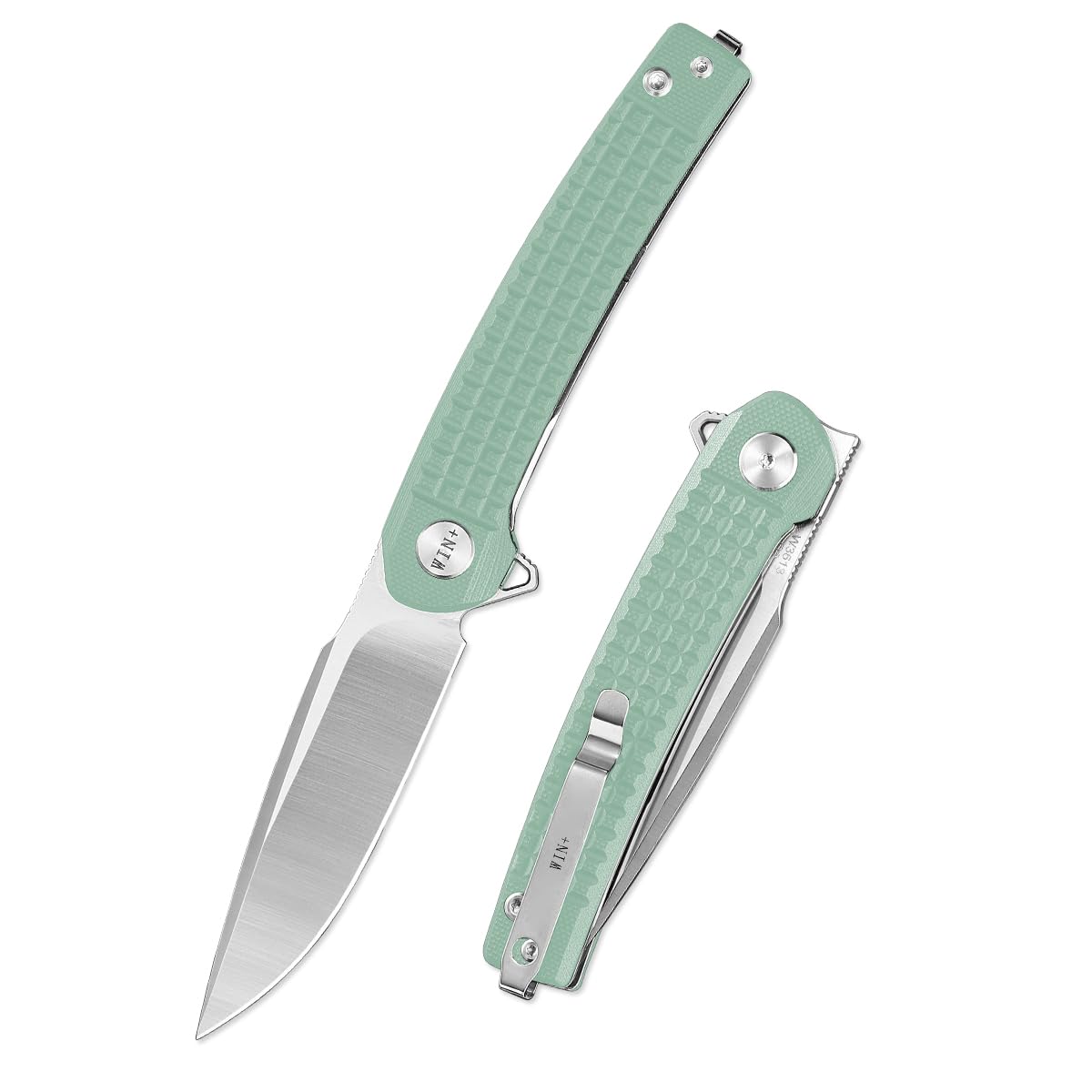 WIN+ Pocket Knife, Folding Knife with Liner Lock, Tactical Knives with Ball Bearing and Clip, D2 Small EDC Knife for Survival Camping, Ideal gift for Men and Women 3613 (Jade-G10) +1 $4.34 $ 4 . 34