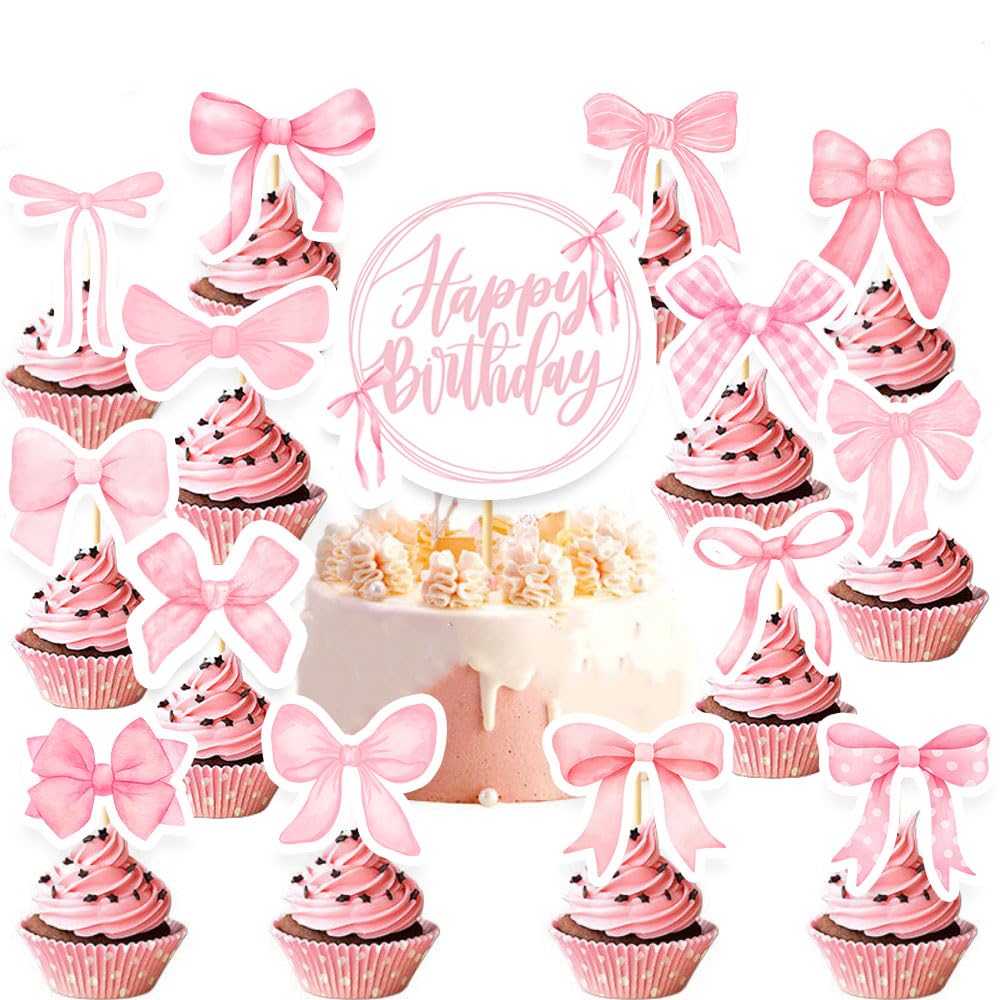 In the midst of a whimsical celebration, a burst of pink erupts atop a birthday cake, as if the very essence of sweetness had been distilled into a delicate bow. — 25PCS Pink Bows Cake Toppe,Bows Cupcake Topper,Coquette Bows Cake Topper for Birthday Cake Party Decoration Supplies — $1.00No Time To Read?
