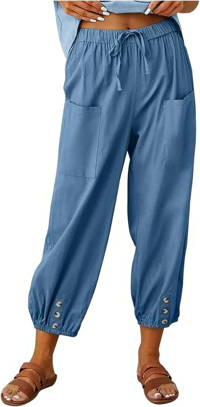 Casual Pants for Women Lantern Tapered Harem Pants Loose Fit Style Flax Ankle Trousers Summer Baggy Slacks with Pockets.